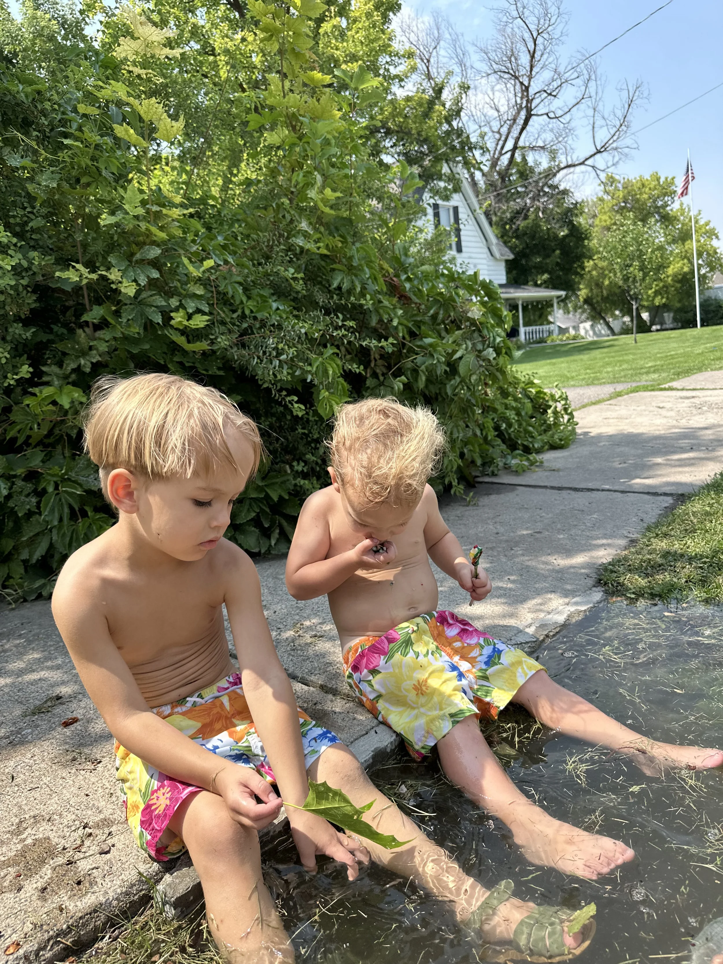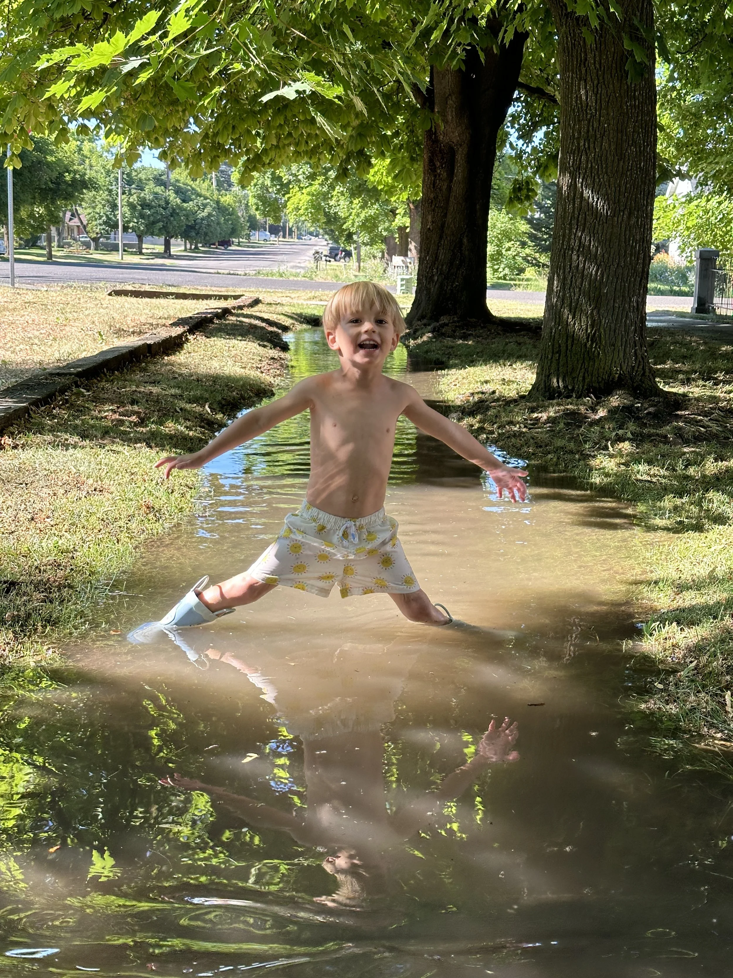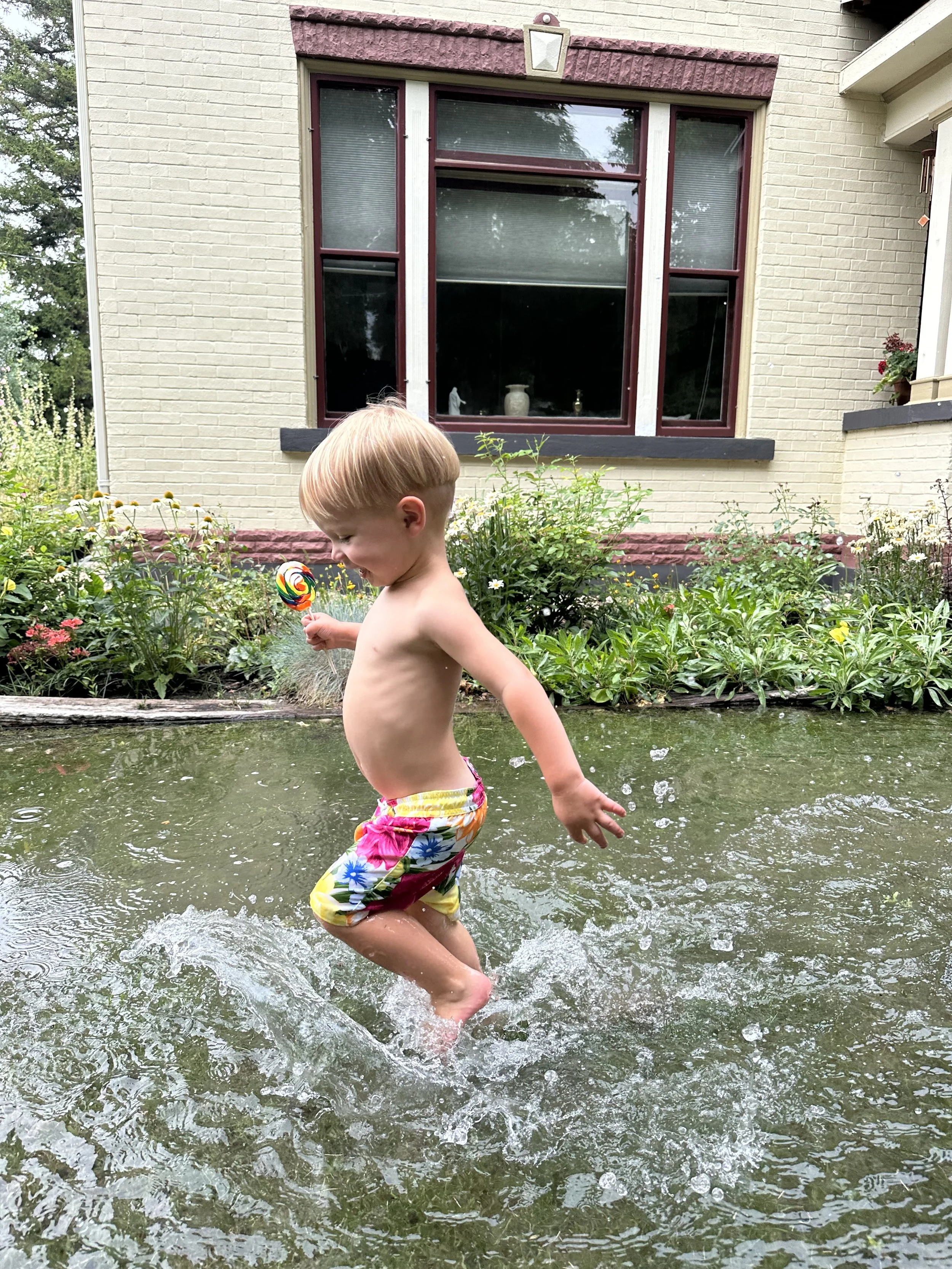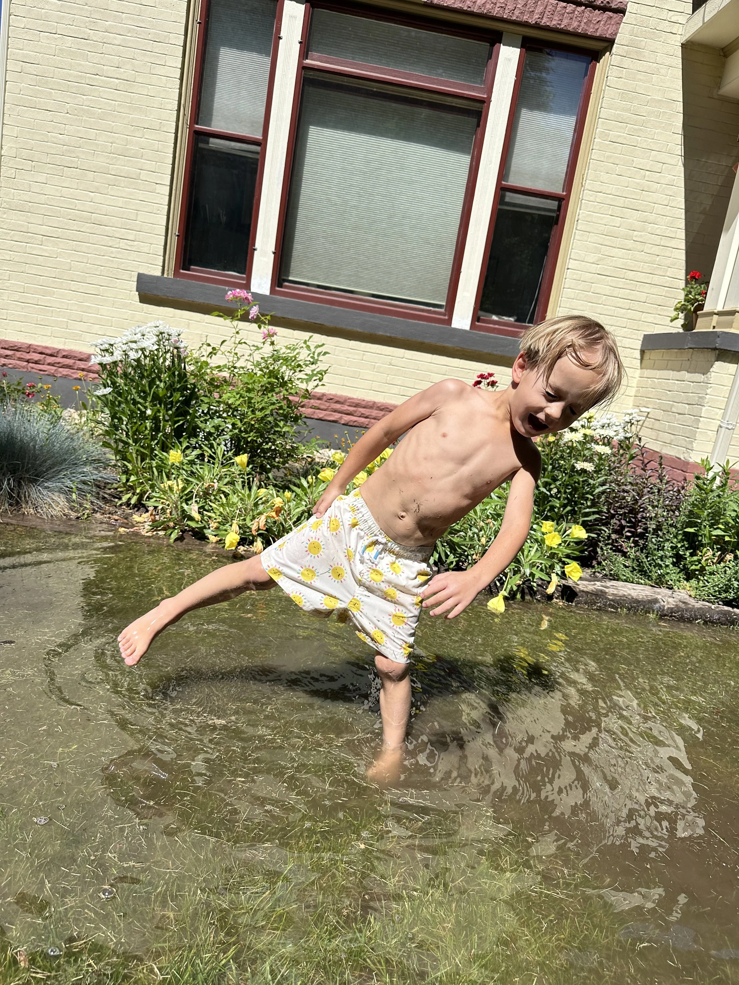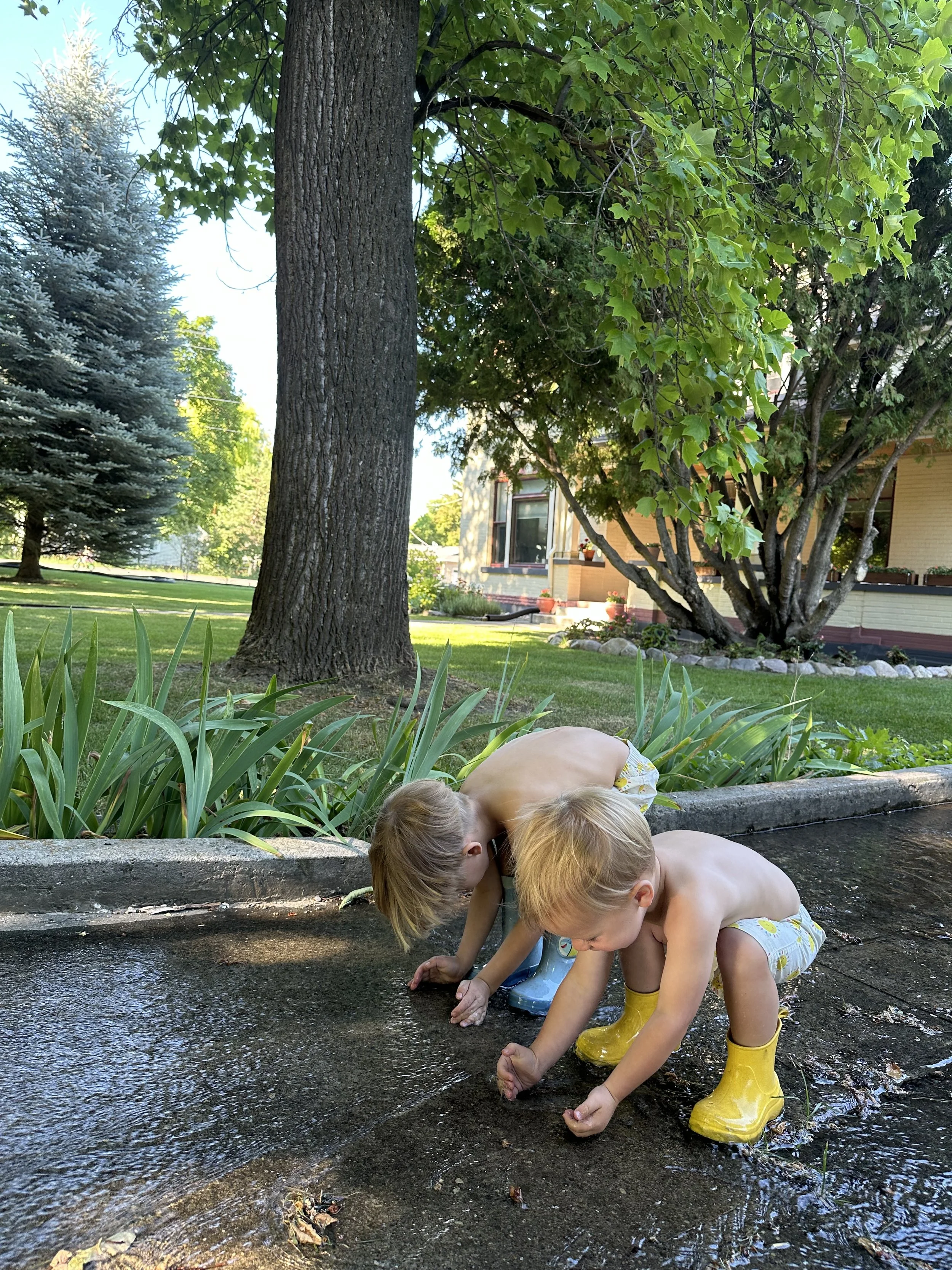 And this summer has been filled with drives (“Wanna go a Providence” -Lars), watering days with Nana where Fritz pulls open the irrigation gates and watches with delight as the ditches flood with water and Lars splashes through the water in a swimsuit, holding on tight to a lollipop.