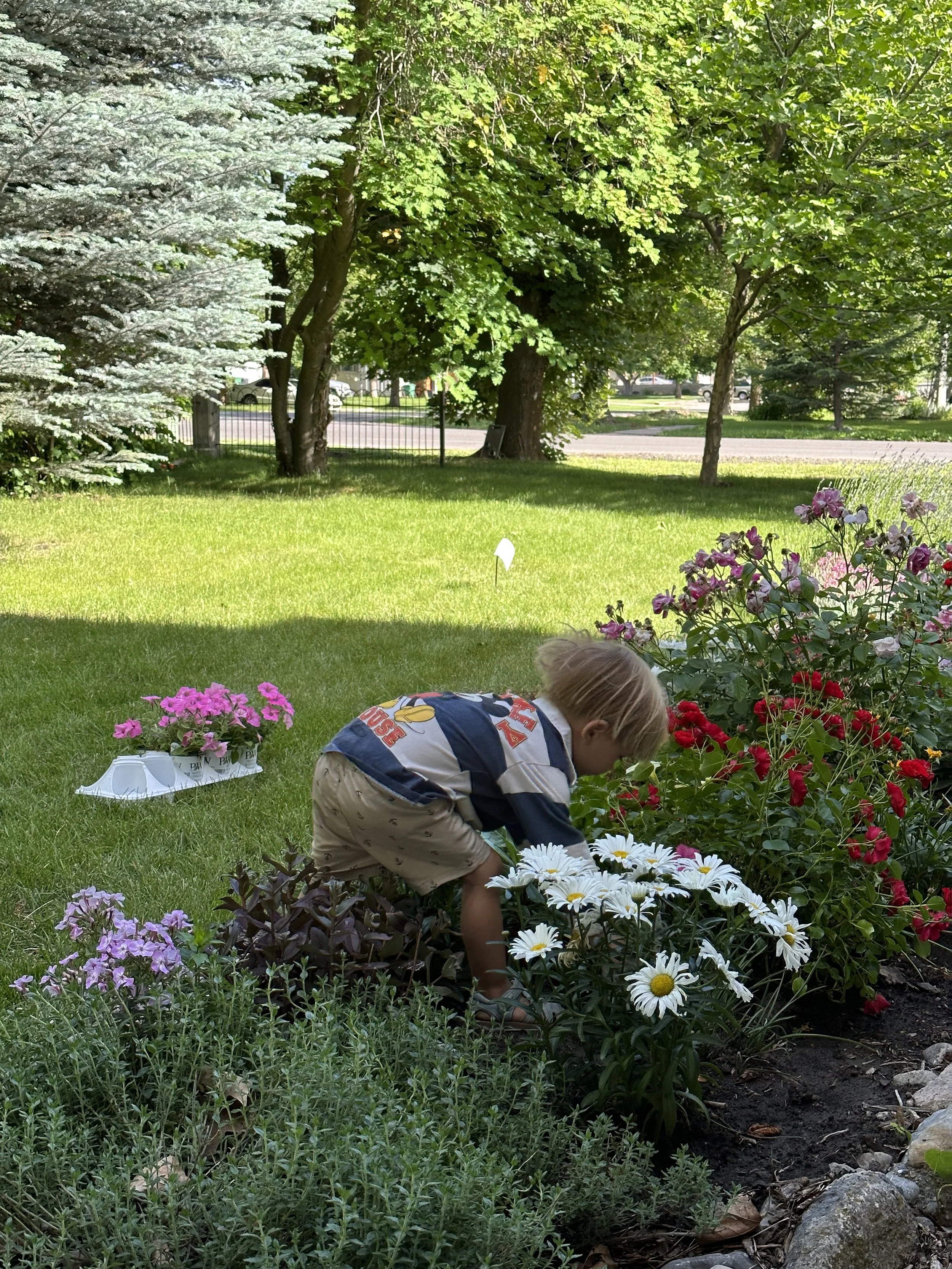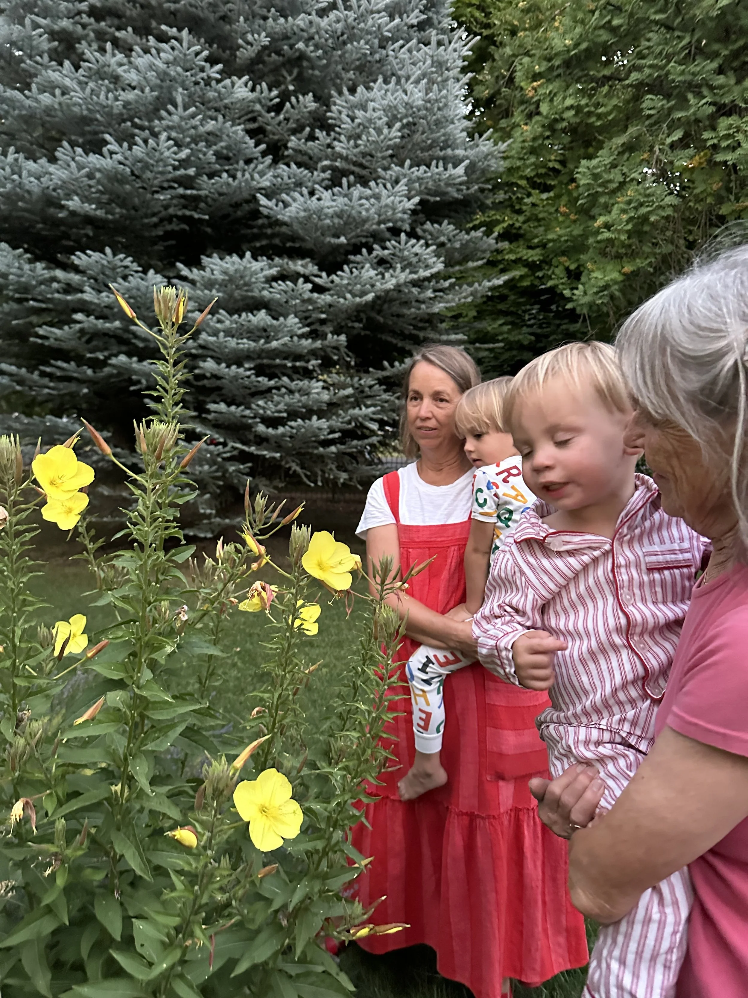 Most recent sleepover. Boys watched Grandma Hansen’s evening primroses pop open as the sunset. She only had one tiny plant when my mom was little, and they would go outside to watch as it opened. Now there are primroses on primroses on primroses. She would be so thrilled. Also, sorry Lars, your eyes are closed in this picture, but it was too cute not to post. Someday when you’re bigger we might have to care about your facial expressions in photos but right now I think every photo of you is perfect and so here you go.