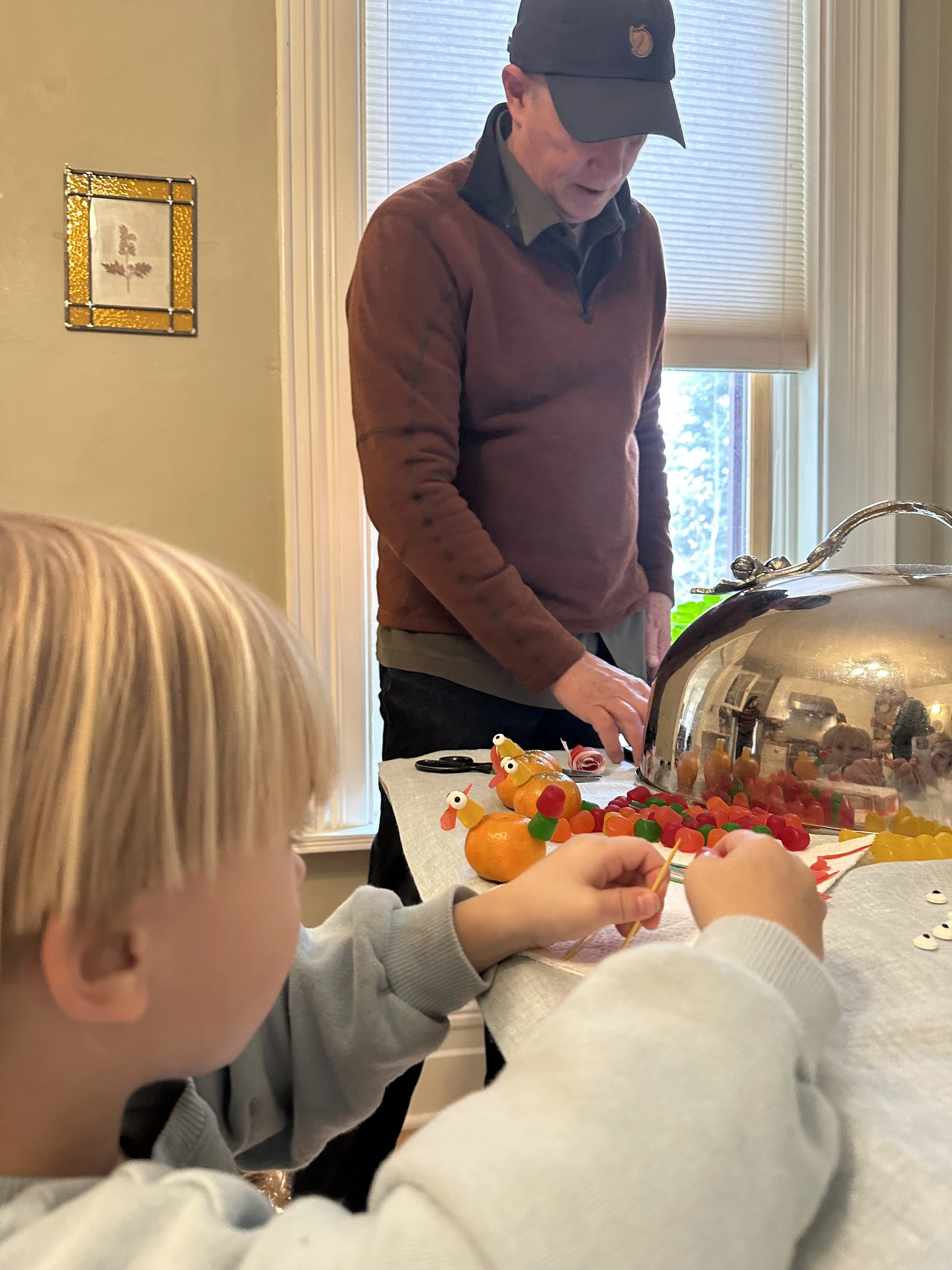 Fritz (3) and Papa making Papa’s famous gumdrop turkeys