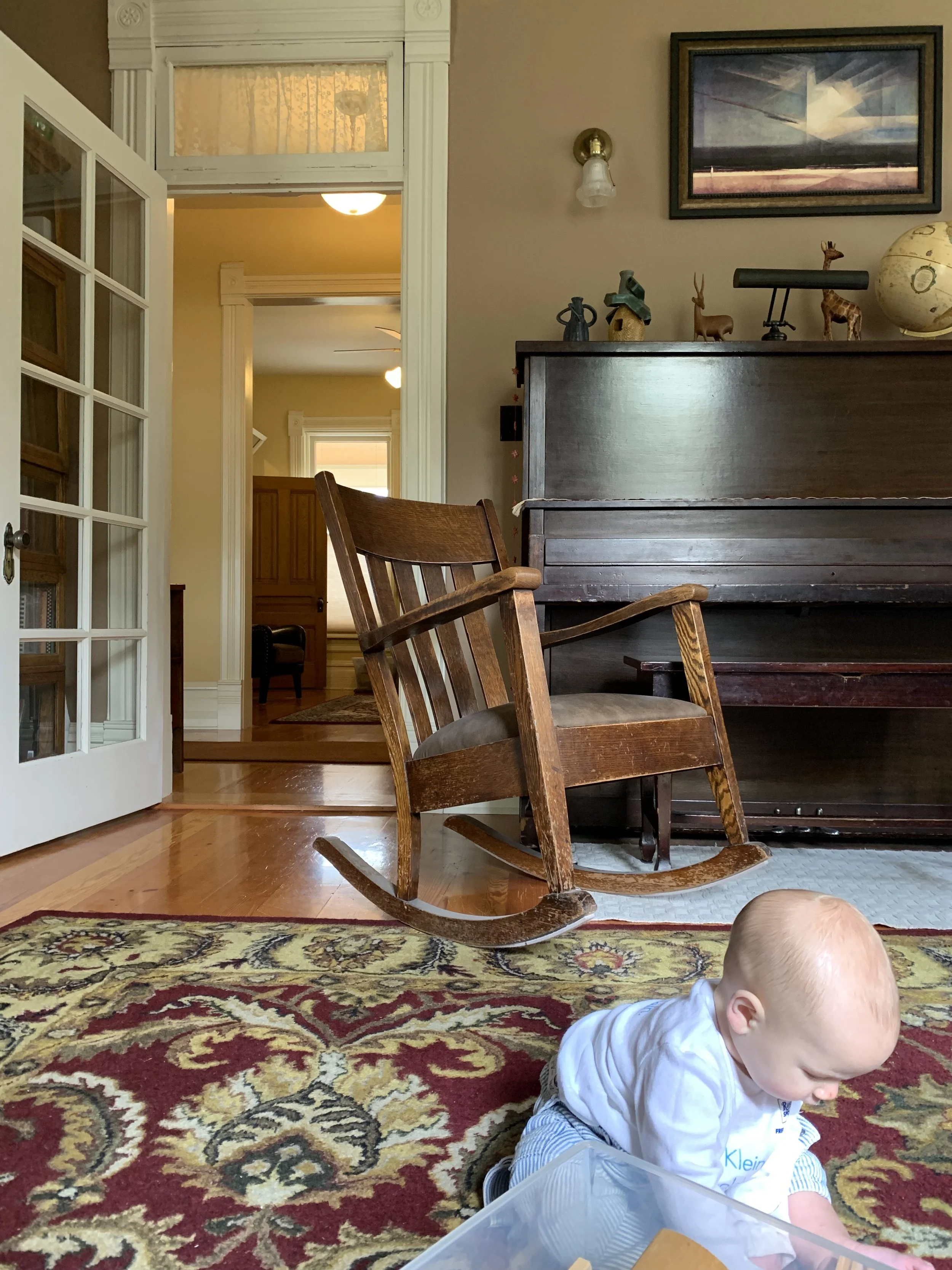 The day she went to look at the house, I went with my parents and the little boys. The second their little feet hit the lawn, it was like they had known this place their whole lives. And I watched them run down the little hill toward my favorite shrub-tree, which they immediately turned into a house. They hurtled through a peach orchard (new), past a row of roses (Grandma’s) and toward an enormous blackberry hedge in the garden (new). It was the end of the season, but there were a few handfuls of berries left, which Fritz plopped into his mouth. They played trains on the carpet in the front room.